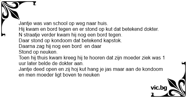 Toen hij thuis kwam kreeg hij te hooren dat zijn moeder ziek was 1 uur later belde de dokter aan.