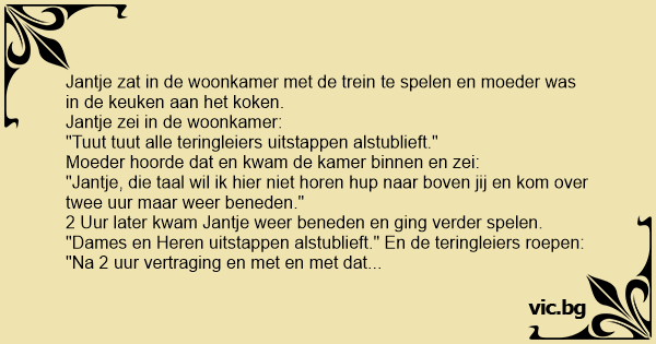 "Jantje, die taal wil ik hier niet horen hup naar boven jij en kom over twee uur maar weer beneden."