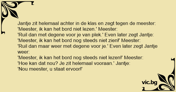 Jantje zit helemaal achter in de klas en zegt tegen de meester:
