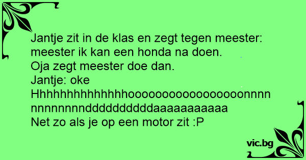 Jantje zit in de klas en zegt tegen meester: meester ik kan een honda na doen.
