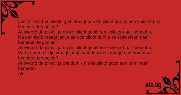 Weer na een tijdje vraagt jantje aan de piloot: durf je een bom naar beneden te gooien?