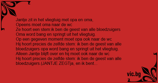 Hij hoort precies de zelfde stem: ik ben de geest van alle bloedzuigers.(JANTJE ZEGTja, en ik веnт Jantje die heeeeeeeeeel nodig moet plassen