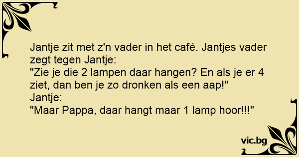 Jantje zit met z'n vader in het café. Jantjes vader zegt tegen Jantje: