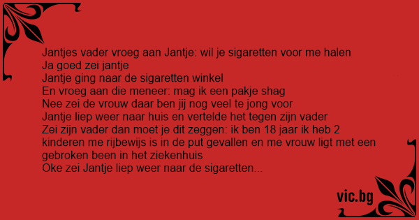 Jantjes vader vroeg aan Jantje: wil je sigaretten voor me halen