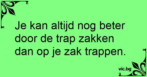 Je kan altijd nog beter door de trap zakken dan op je zак trappen.