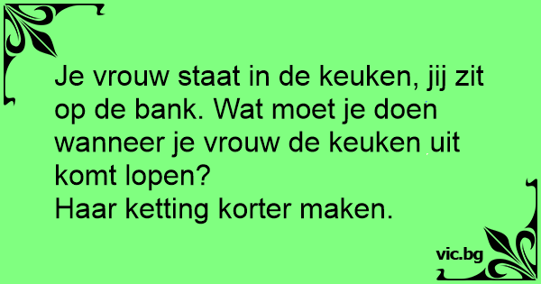 Je vrouw staat in de keuken, jij zit op de bank. Wat moet je doen wanneer je vrouw de keuken uit komt lopen?
