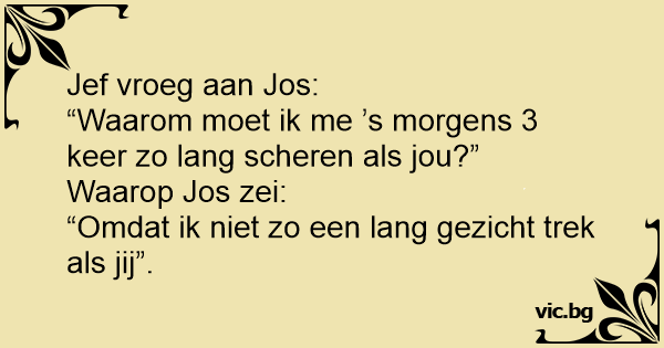 “Omdat ik niet zo een lang gezicht trek als jij”.