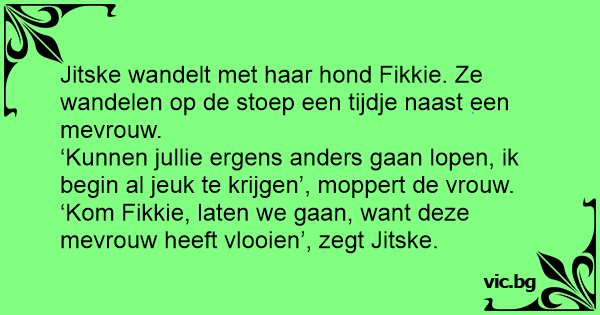 ‘Kom Fikkie, laten we gaan, want deze mevrouw heeft vlooien’, zegt Jitske.