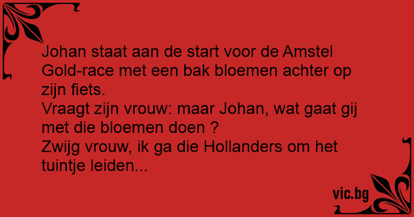 Vraagt zijn vrouw: maar Johan, wat gaat gij met die bloemen doen ?