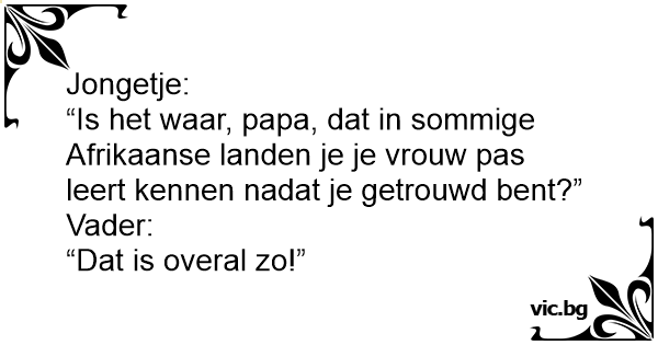 “Is het waar, papa, dat in sommige Afrikaanse landen je je vrouw pas leert kennen nadat je getrouwd веnт?” Vader: