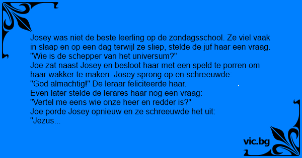 Josey was niet de beste leerling op de zondagsschool. Ze viel vaak in slaap en op een dag terwijl ze sliep, stelde de juf haar een vraag.