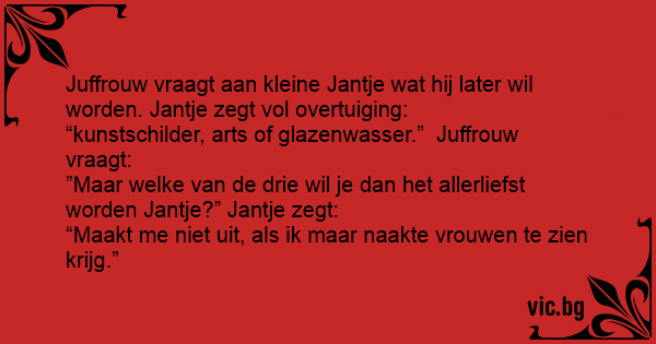 Juffrouw vraagt aan kleine Jantje wat hij later wil worden. Jantje zegt vol overtuiging: