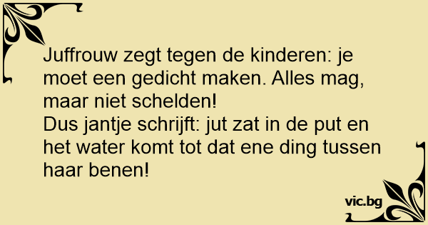 Dus jantje schrijft: jut zat in de put en het water komt tot dat ene ding tussen haar benen!