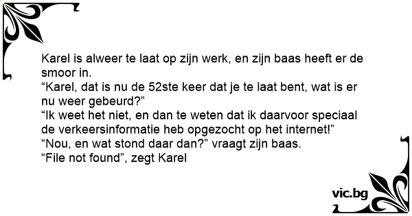 “Karel, dat is nu de 52ste keer dat je te laat веnт, wat is er nu weer gebeurd?”