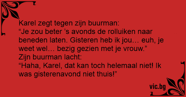 “Je zou beter ’s avonds de rolluiken naar beneden laten. Gisteren heb ik jou… euh, je weet wel… bezig gezien met je vrouw.”
