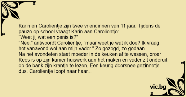 "Ja," zegt Carolientje, "het is net een lul, alleen een flink stuk kleiner!"