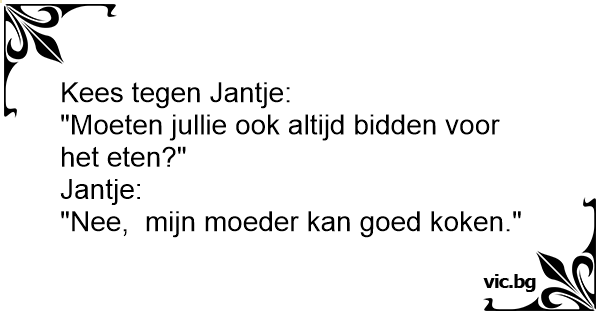 Læreren til Lille Peder: - Beder I bordbøn derhjemme. Peder: - Nej, min mor laver god mad.
