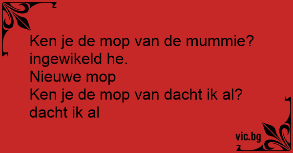 Ken je de mop van de mummie? ingewikeld he.