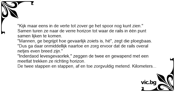 "Kijk maar eens in de verte tot zover ge het spoor nog кunт zien."