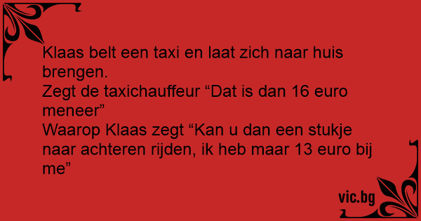 Waarop Klaas zegt “Kan u dan een stukje naar achteren rijden, ik heb maar 13 euro bij me”