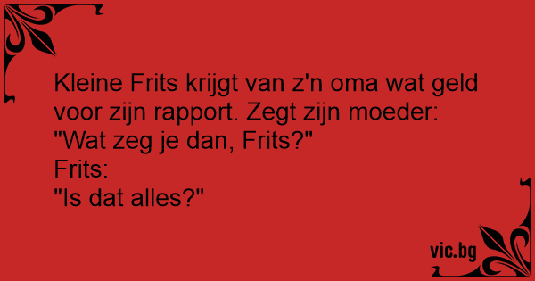 Kleine Frits krijgt van z'n oma wat geld voor zijn rapport. Zegt zijn moeder: