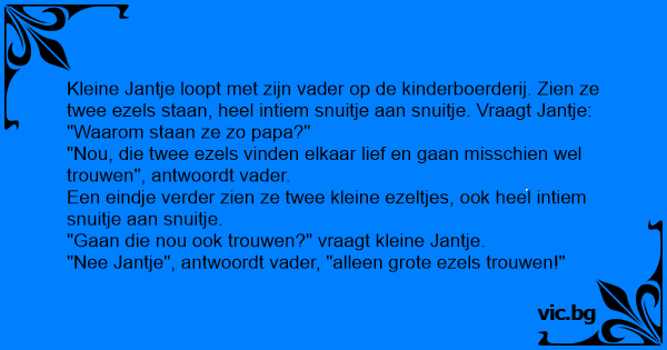 "Nee Jantje", antwoordt vader, "alleen grote ezels trouwen!"