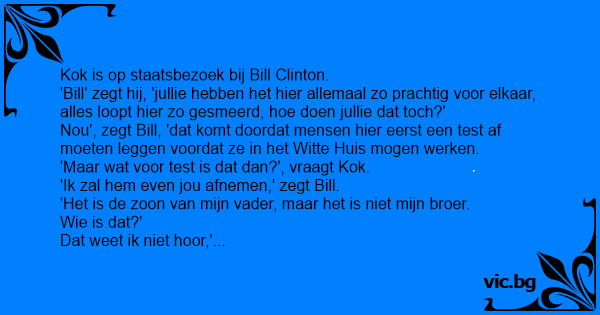 Nou', zegt Bill, 'dat komt doordat mensen hier eerst een test af moeten leggen voordat ze in het Witte Huis mogen werken.