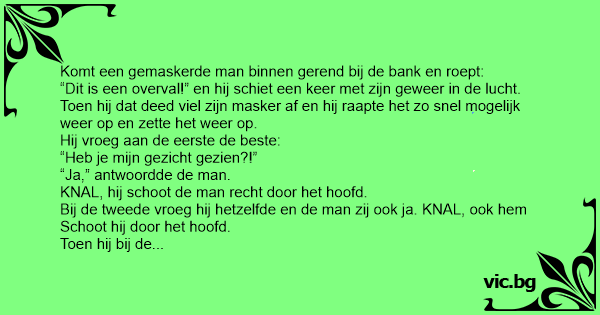 Komt een gemaskerde man binnen gerend bij de bank en roept: