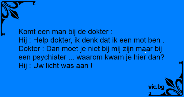Hij : Help dokter, ik denk dat ik een mot ben .