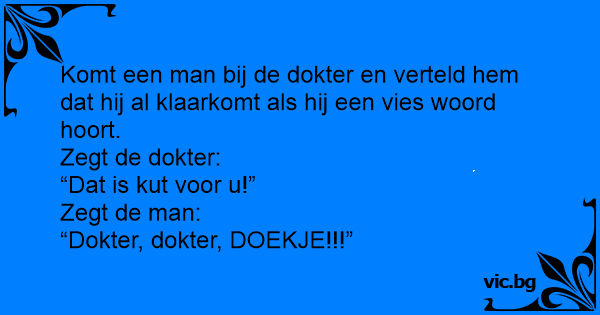 Komt een man bij de dokter en verteld hem dat hij al klaarkomt als hij een vies woord hoort.