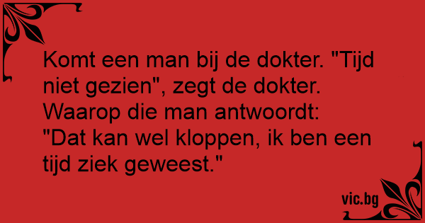 Komt een man bij de dokter. "Tijd niet gezien", zegt de dokter.