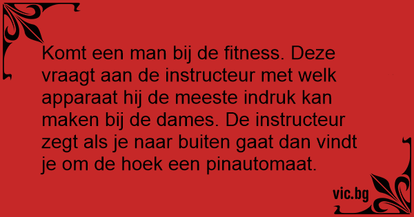 Komt een man bij de fitness. Deze vraagt aan de instructeur met welk apparaat hij de meeste indruk kan maken bij de dames. De instructeur zegt als je naar buiten gaat dan vindt je om de hoek een pinautomaat.