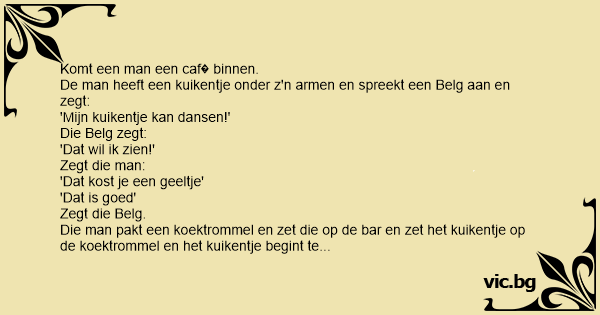 De Belg komt de volgende dag binnen in het caf� en zegt tegen een Belg: