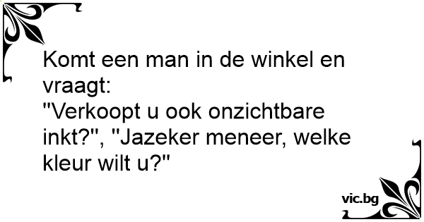''Verkoopt u ook onzichtbare inkt?'', ''Jazeker meneer, welke kleur wilt u?''