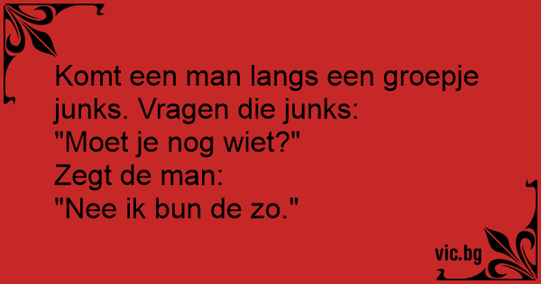 Komt een man langs een groepje junks. Vragen die junks: