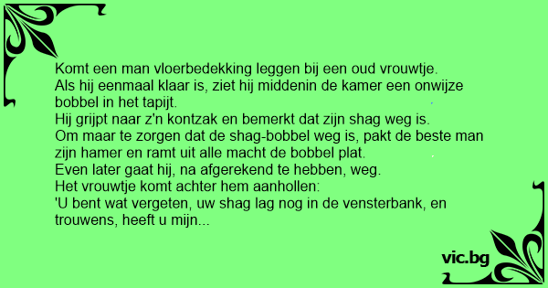 Komt een man vloerbedekking leggen bij een oud vrouwtje.