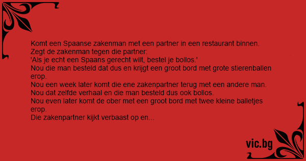 Komt een Spaanse zakenman met een partner in een restaurant binnen.