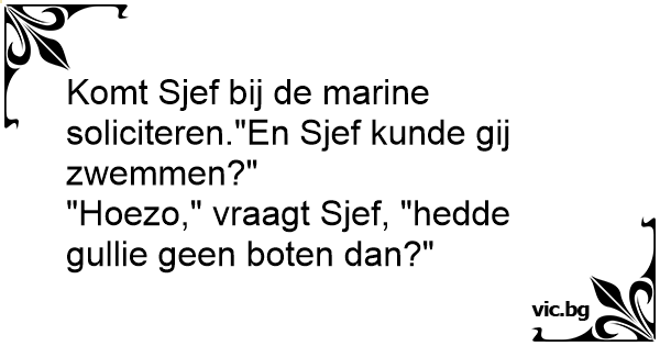 Komt Sjef bij de marine soliciteren."En Sjef kunde gij zwemmen?"