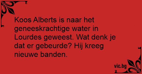 Koos Alberts is naar het geneeskrachtige water in Lourdes geweest. Wat denk je dat er gebeurde? Hij kreeg nieuwe banden.