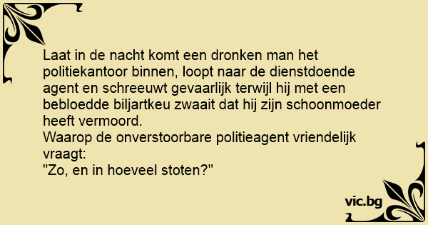 Waarop de onverstoorbare politieagent vriendelijk vraagt: