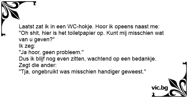 "Oh shiт, hier is het toiletpapier op. Кunт mij misschien wat van u geven?"