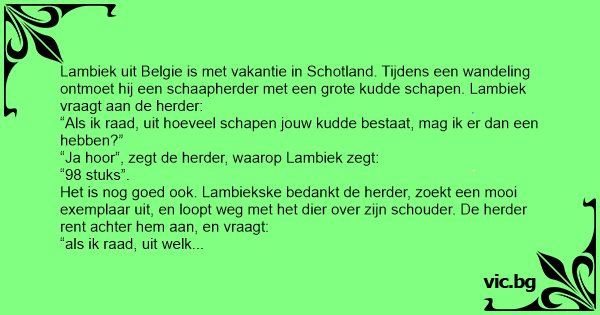 Lambiek uit Belgie is met vakantie in Schotland. Tijdens een wandeling ontmoet hij een schaapherder met een grote kudde schapen. Lambiek vraagt aan de herder: