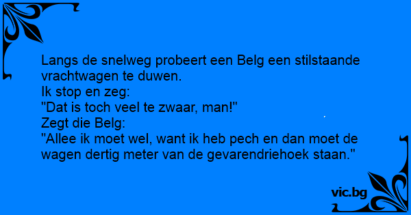 "Allee ik moet wel, want ik heb pech en dan moet de wagen dertig meter van de gevarendriehoek staan."