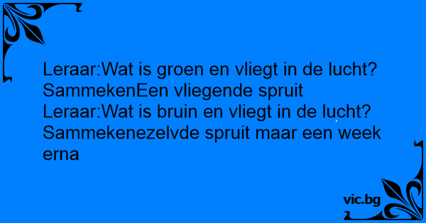 Leraar:Wat is groen en vliegt in de lucht?