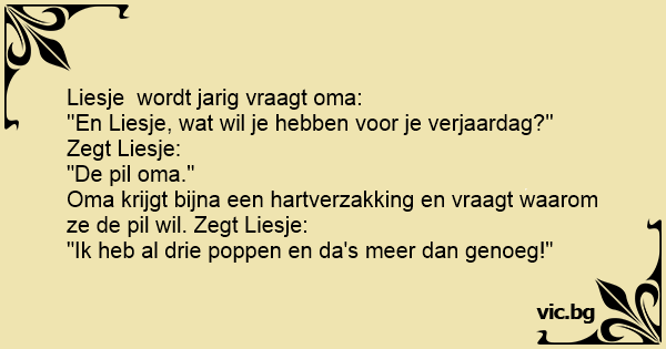 ''En Liesje, wat wil je hebben voor je verjaardag?'' Zegt Liesje: