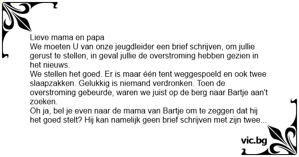 We moeten U van onze jeugdleider een brief schrijven, om jullie gerust te stellen, in geval jullie de overstroming hebben gezien in het nieuws.