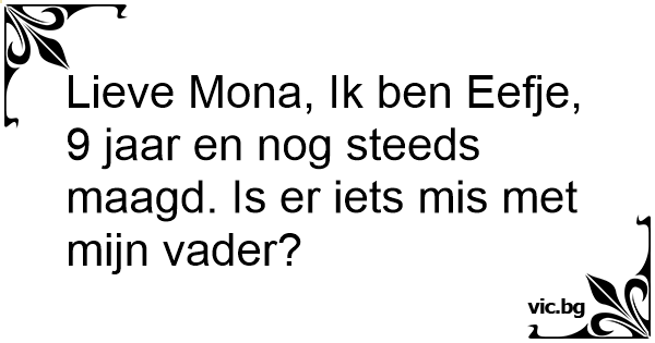 Lieve Моnа, Ik ben Eefje, 9 jaar en nog steeds maagd. Is er iets mis met mijn vader?