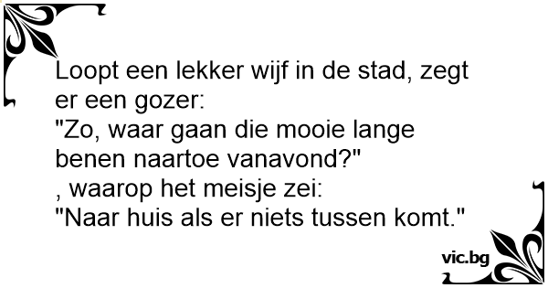 Loopt een lekker wijf in de stad, zegt er een gozer: