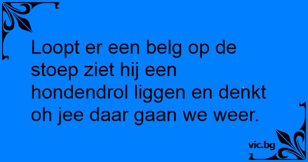 Loopt er een belg op de stoep ziet hij een hondendrol liggen en denkt oh jee daar gaan we weer.