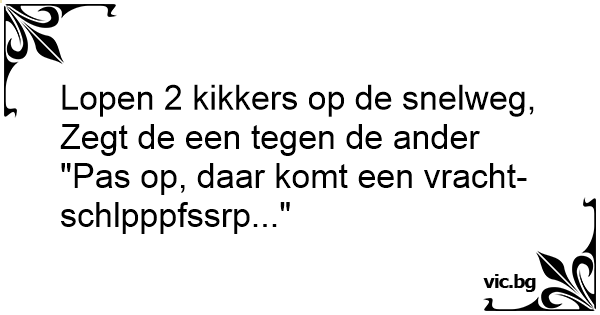 Zegt de een tegen de ander "Pas op, daar komt een vracht-schlpppfssrp..."